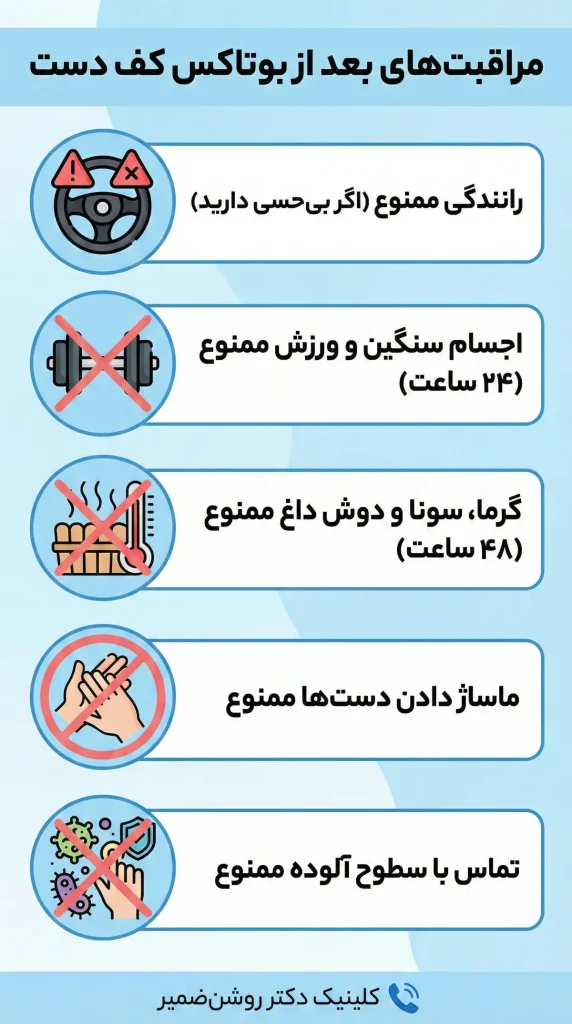 مراقبتهای حیاتی بعد از تزریق بوتاکس کف دست