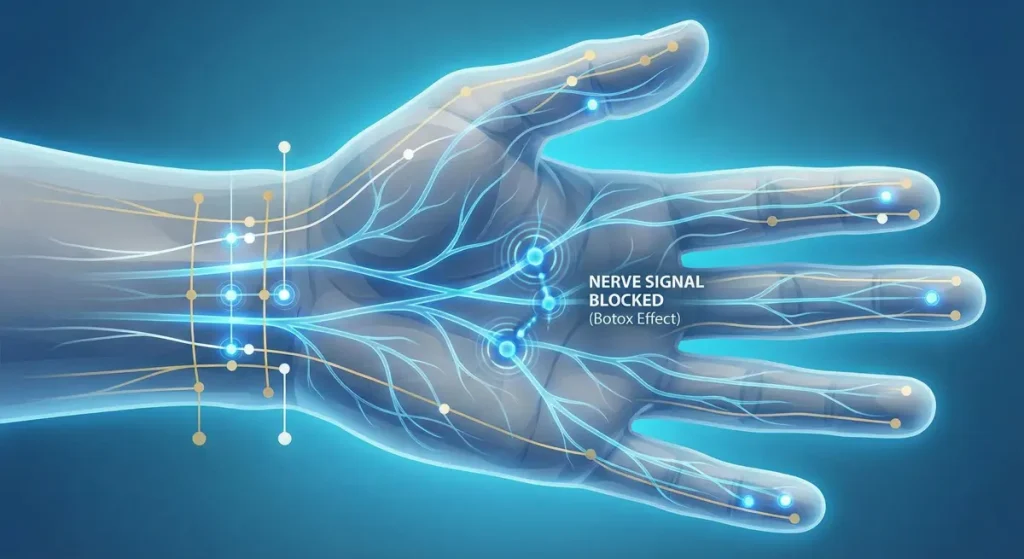این وضعیت ربطی به بهداشت فردی ضعیف ندارد. این یک شرایط پزشکی است که میتواند ژنتیکی باشد. استفاده از مام، اسپری یا شستن مداوم دستها راه حل این مشکل نیست، چون مشکل از “سطح پوست” نیست، مشکل از “پیام عصبی” است. و اینجاست که بوتاکس وارد میدان میشود.